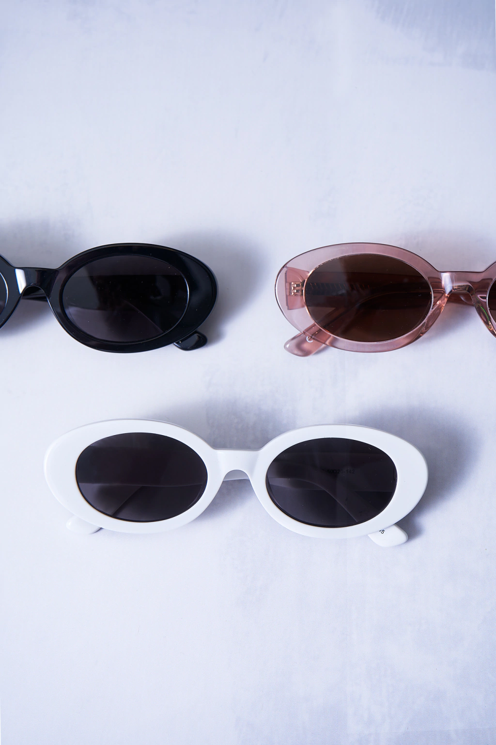 ⁃ Gafas de acetato blanco, cristales en tono negro con protección UV400 capaz de bloquear los rayos solares al 100%. Bisagra metálica.